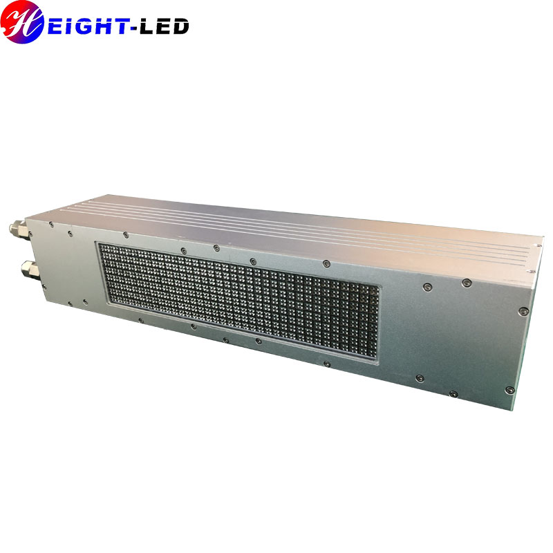 A high-performance UVLED surface light source curing system designed for UV flexo printing and UV ink curing. The system mainly includes a controller, 8 UVLED irradiation heads and a water cooler. The UVLED irradiation head is integrated with imported high-intensity ultraviolet LEDs. The UV spectrum wavelength is 395nm, air-cooled for heat dissipation, and the effective curing area is 280X60mm. It supports external signal input and triggering, and can be equipped with semi-automatic or fully automatic production lines.